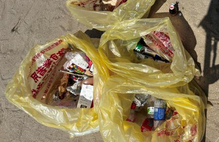 ビーチクリーンでは、毎日清掃している海辺にも関わらず大量のゴミが落ちており、一同驚きを隠せませんでした。