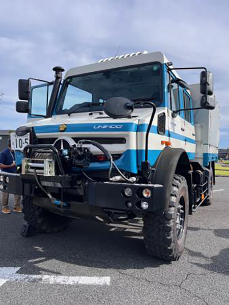 当日はけ~ぶるGiRLS 髙井智世さんが一日警察署長を務め、白バイ隊員によるデモ走行やウニモグの展示が行われました。