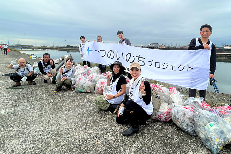 「一つのいのちプロジェクト」の新たな「自然のいのち」を守る取組みとして、市民団体や地元住民、教育機関、企業、行政などの協力で行われる大規模清掃「藤前干潟クリーン大作戦」に参加しました。